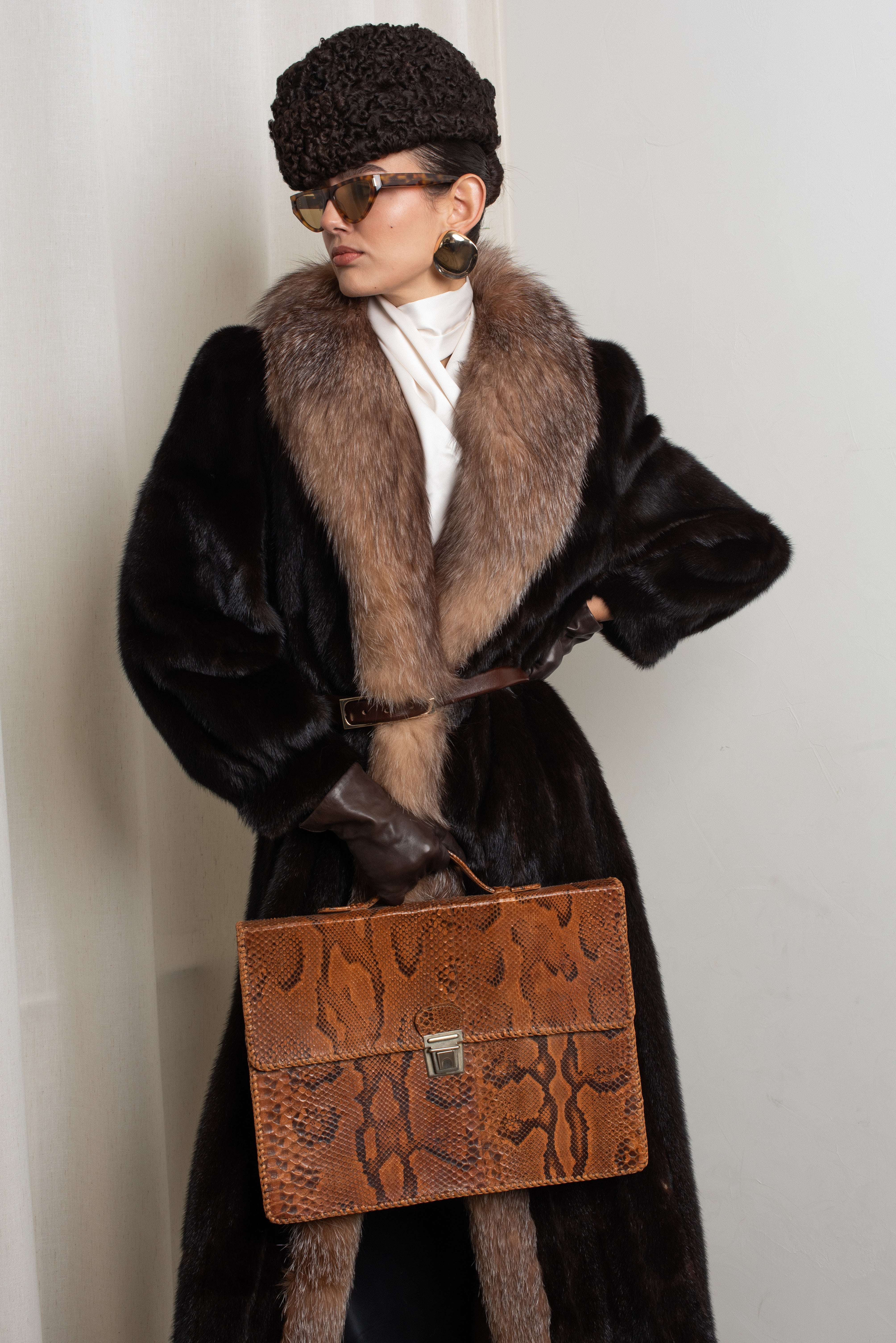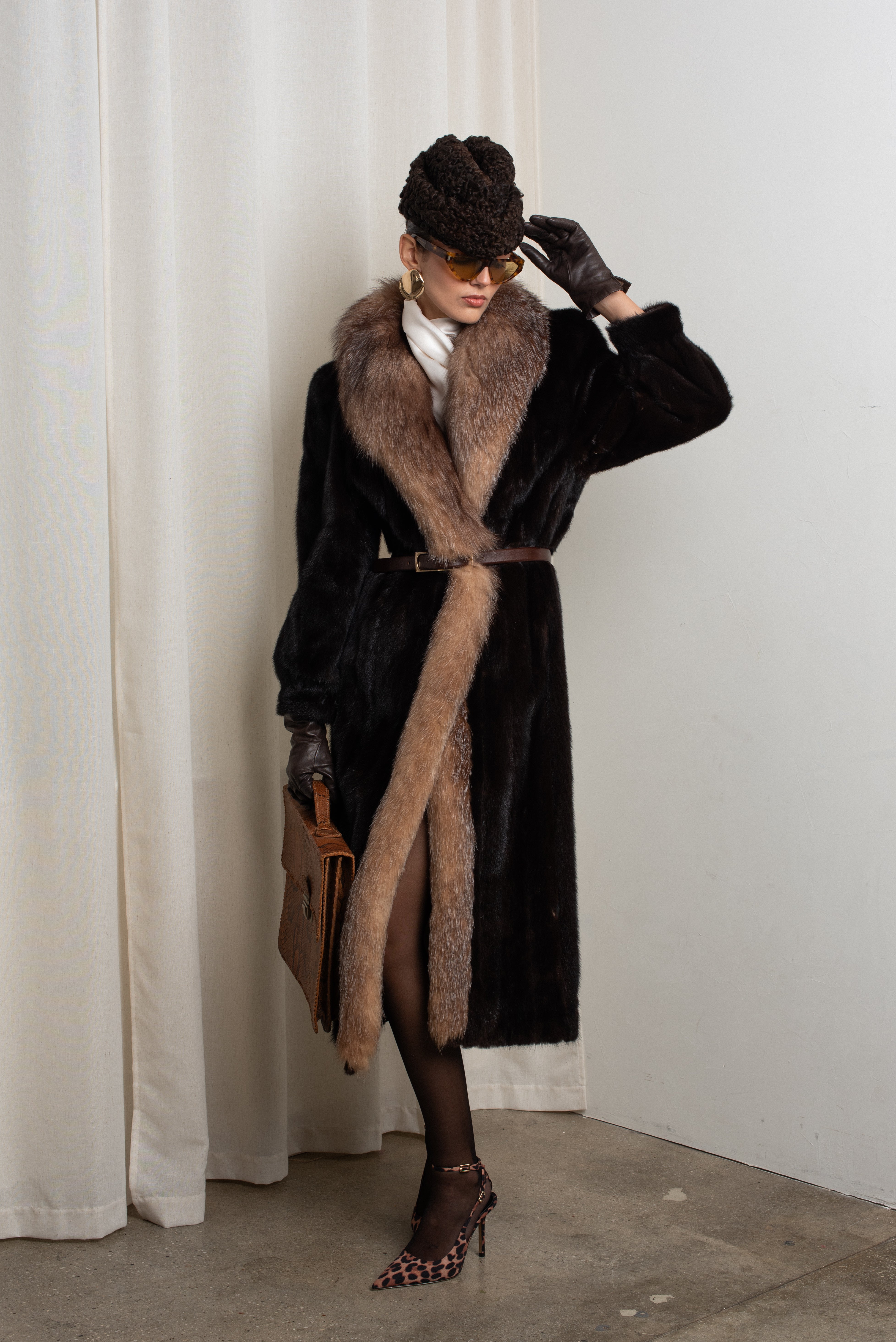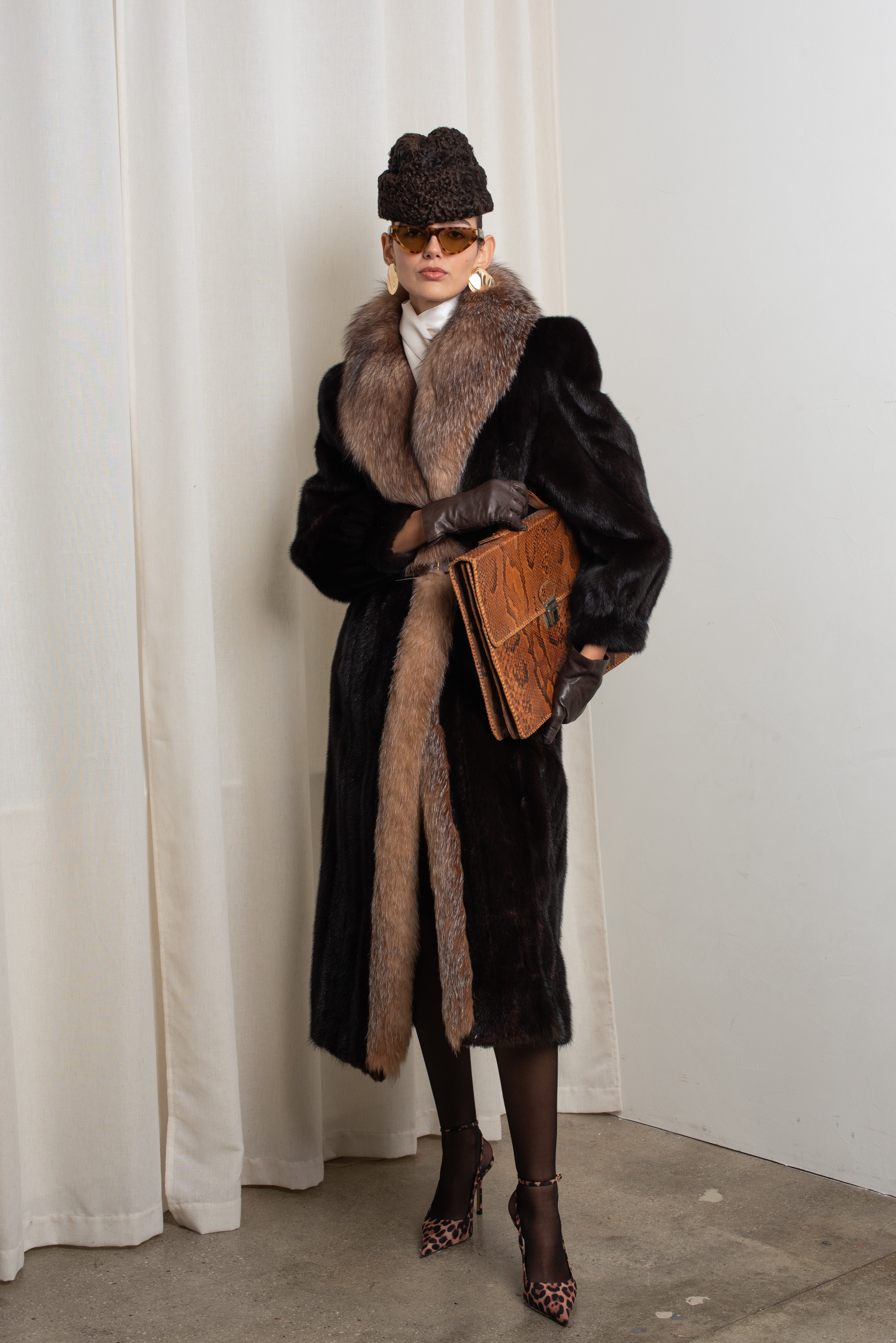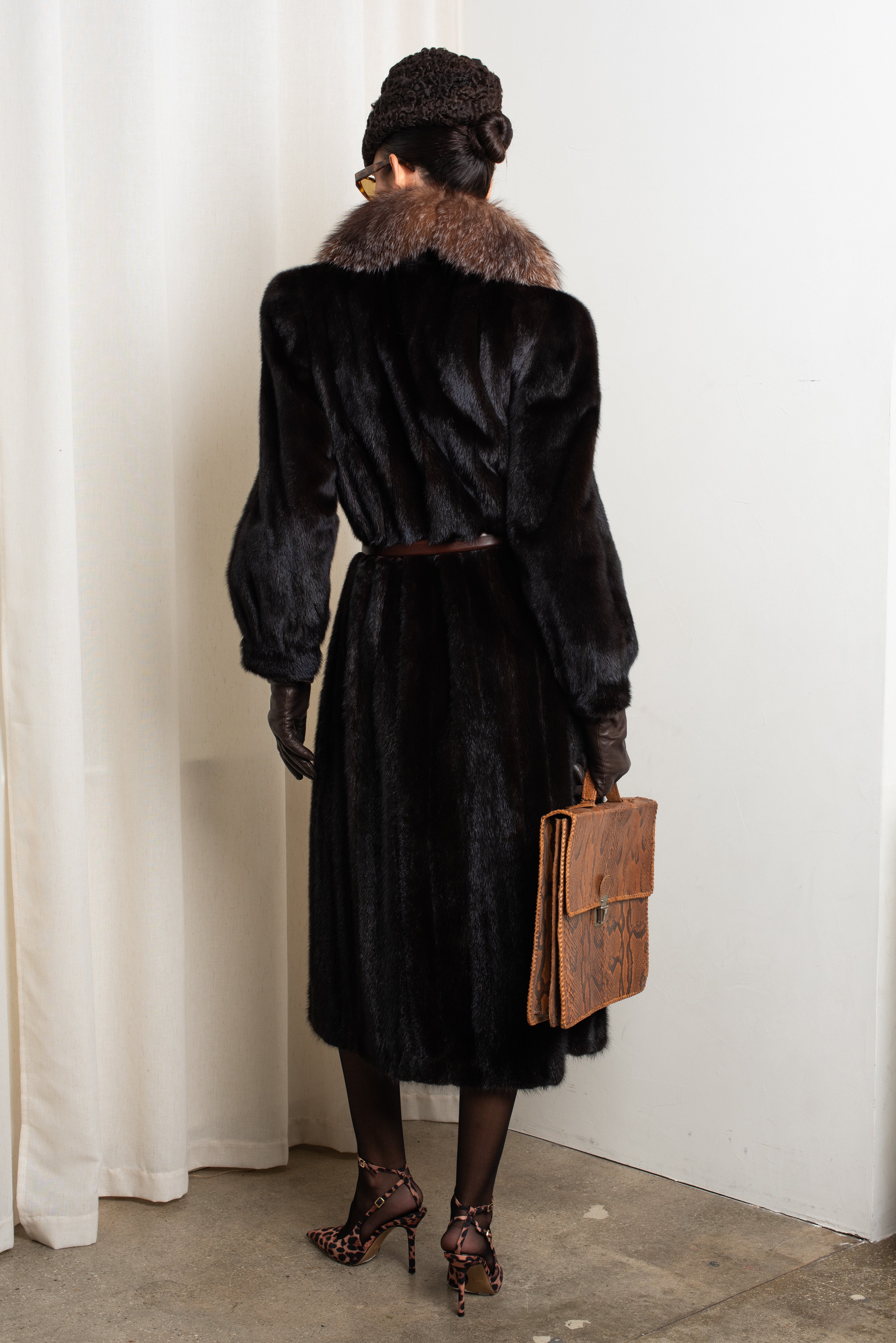 Dark Mahogany Mink with Crystal Fox Tuxedo Front