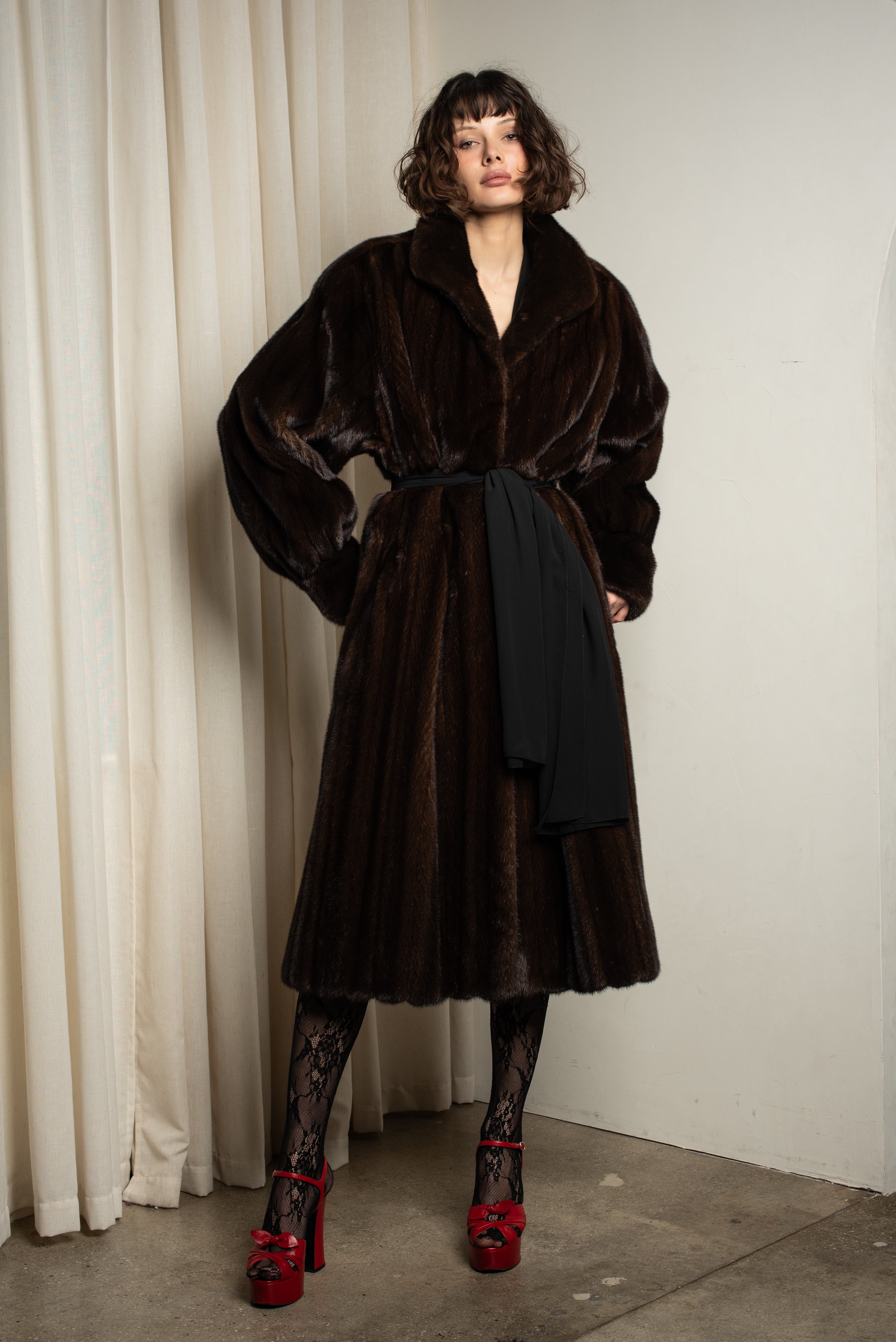 Size L. These fur coats are vintage and one of a kind. We recommend wearing them gently and with care to ensure they remain beautiful for years to come.